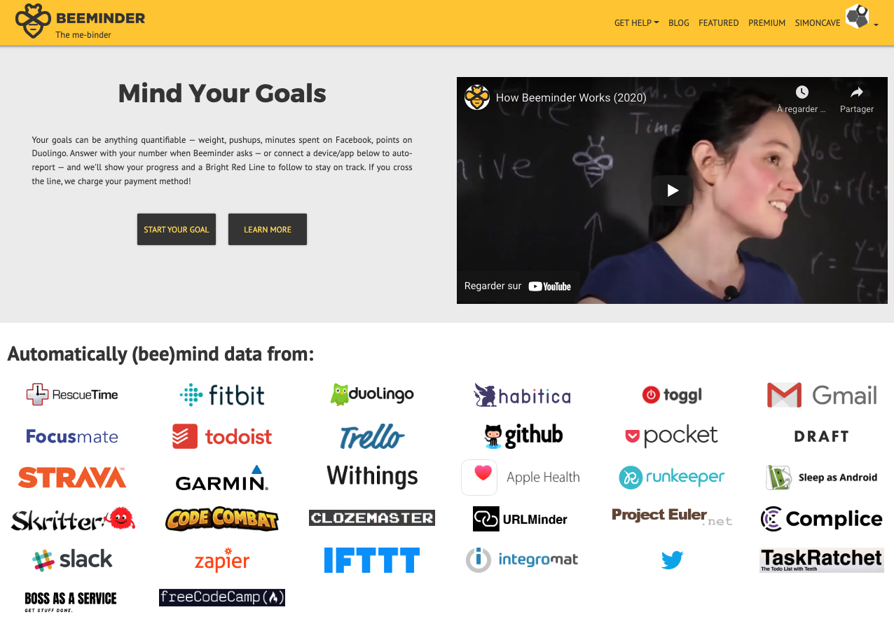 Le plus cool dans tout ça, c’est qu’il est possible de connecter directement Beeminder aux outils que vous utilisez déjà actuellement comme Notion, Trello, Evernote, Click Up, le réveil de votre téléphone, votre application de sport…